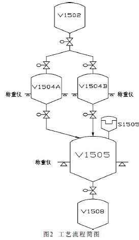 如圖2所示,在安慶石化的SHELL煤氣化裝置中, 粉煤灰的進料與放料都有一套復雜的自動順序控制系統(tǒng), 用于定時完成對介質的進料和放料, 工藝流程簡圖如下所示。循環(huán)順序控制基本分為減壓、放料、充壓、進料等部分,鎖斗罐充壓后與上部高壓設備均壓連通進料, 進料完成之后與上部高壓設備隔離,減壓至接近常壓,再與下部放料罐均壓連通放料, 較后放料罐常壓放料。運行中在進料和放料時鎖斗罐收集的灰量是作為循環(huán)順序控制中的判別條件,這個重量達到設定值則程序向下進行,鎖斗罐與上下兩臺設備間的高低壓隔離以及均壓后連通和放料,否則程序保持,繼續(xù)收集煤灰。因此不難理解對鎖斗罐收集的灰進行稱量是保證在不中斷氣化爐運行的情況下定期對灰進行收集和放料。