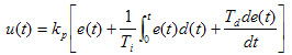流量就是一定時間內(nèi)皮帶上走過的物料量。電子皮帶秤稱量的是瞬時流量,上位機給出的是設定流量,二者在實時計量中有所偏差。在流量實際控制中采用工業(yè)控制中應用較為廣泛的PID調(diào)節(jié),根據(jù)流量偏差,利用比例、積分、微分計算出控制量進行控制,控制量輸入和輸出(誤差)之間的關系在時域中可用公式表示如下: